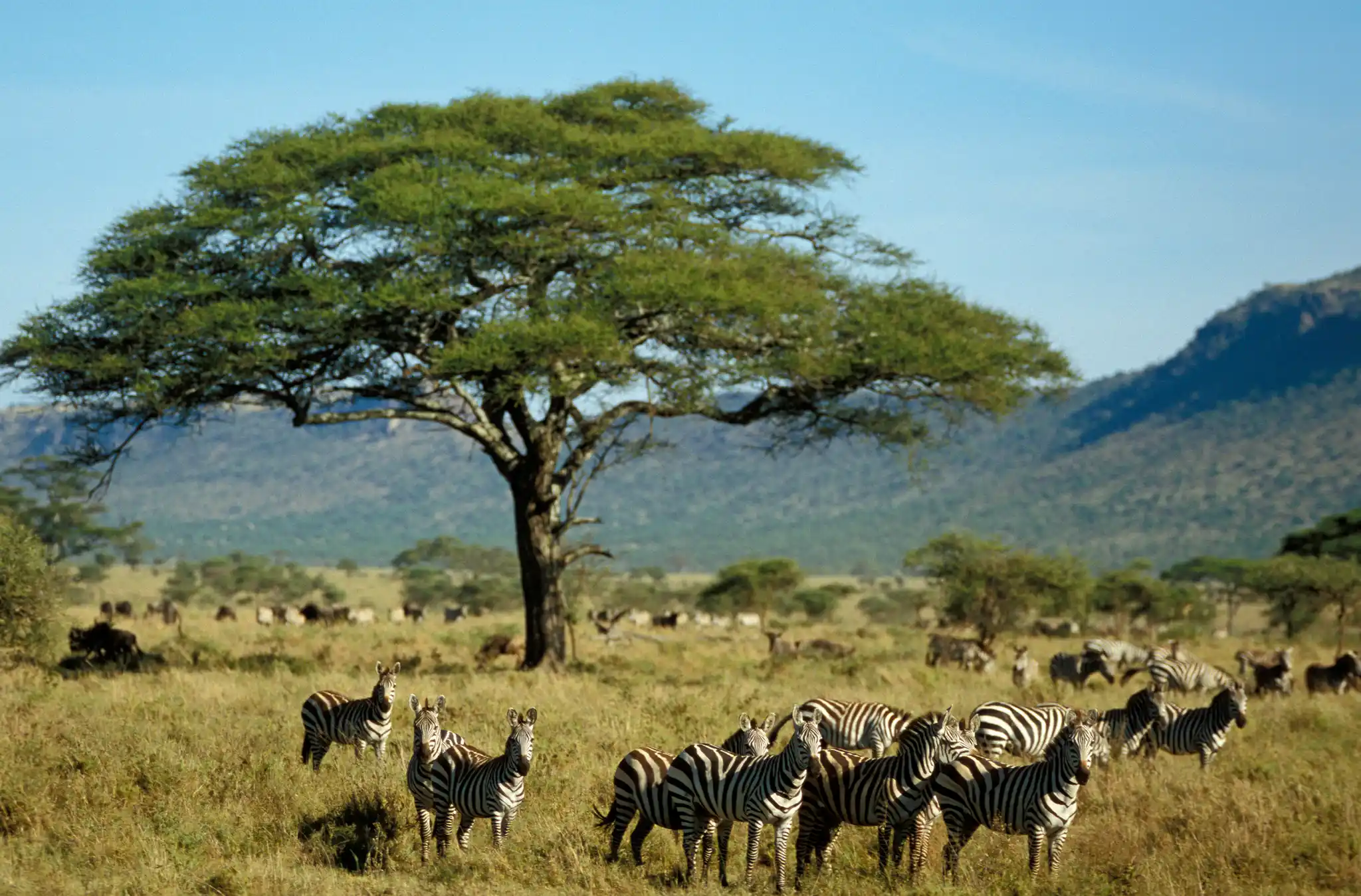 Partez à la recherche des immenses troupeaux de gnous et de zèbres, acteurs de la grande migration annuelle, l’un des plus spectaculaires phénomènes naturels de la planète