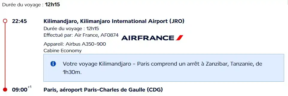 Arrivée à l’aéroport international Kilimandjaro 21:10